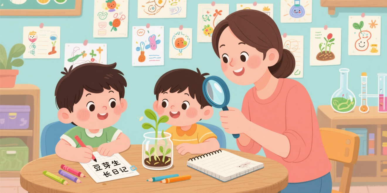 - 做 “资源提供者”:在家中准备放大镜、温度计等简单工具,陪孩子观察 “豆芽生长过程”“月相变化”,记录在 “科学观察本” 上。